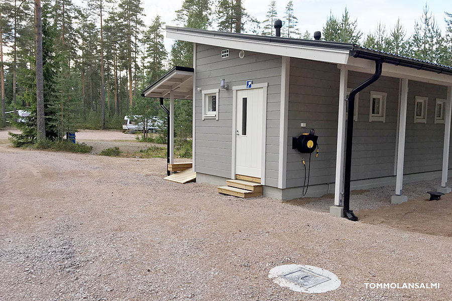 Camping-alueemme uusi huoltorakennus valmistui 2018. Rakennuksessa on erilliset modernit wc-tilat naisille ja miehille sekä erillinen tila, jossa on inva-wc ja inva-suihku. Samassa inva-tilassa on camping-vieraille tarkoitettu pyykinpesukone, jota voi vuokrata ravintolasta sekä lastenhoitopöytä, potta, korokeistuin ja vanna sekä mahdollisuus käyttää perheen pienimmät lapset suihkussa. Rakennus on lämmitetty talvisin, joten rakennus palvelee erityisesti ympäri vuoden majoittuvia asiakkaitamme. Rakennuksen vieressä on ajokaivo harmaille vesille ja rakennuksesta löytyy myös tyhjennyspaikka kemialliselle wc:lle sekä vesipiste.
